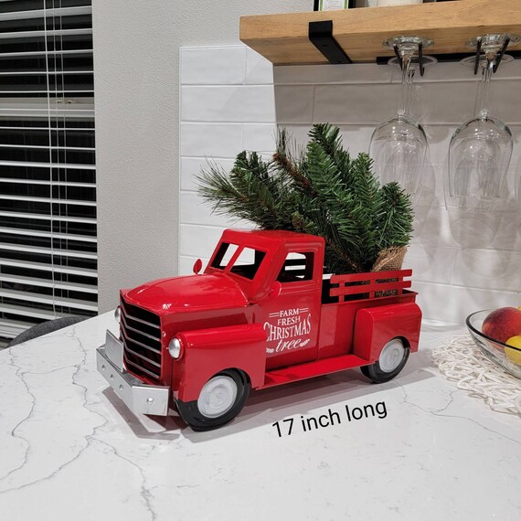 SWEETYHOMEE - If youre looking for a big Dining Room table-sized version of this Christmas Decor Idea check out this DIY Red Truck Christmas. - CHRISTMAS FARM RED TRUCK DESIGN. 25 LARGE Red Metal Christmas Truck Planter-Christmas Decor-Farm Truck-Farmhouse Decor-Old Fashioned Vintage Pickup Truck-Floral Supply.